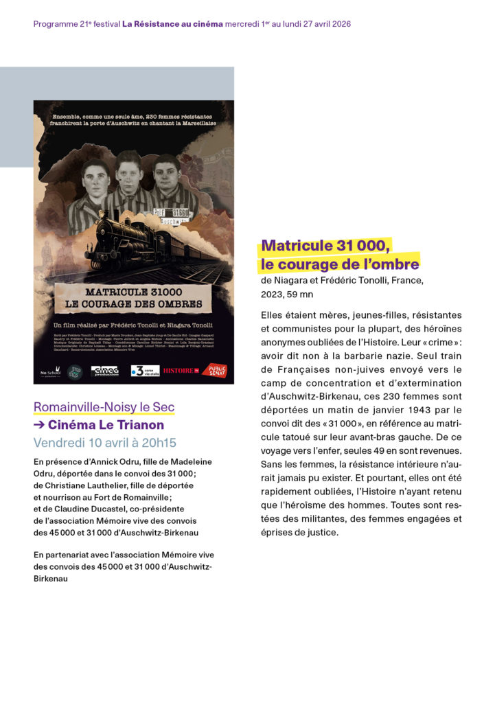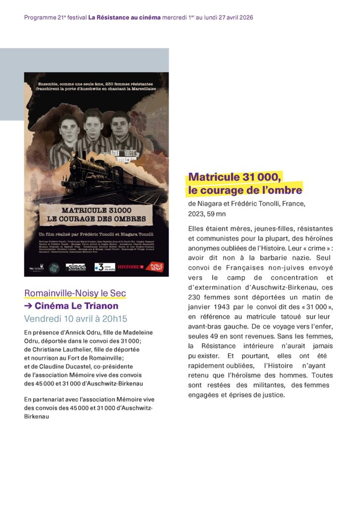 Publié dansVie associative|Commentaires fermés sur 21e festival La Résistance au cinéma en Seine-Saint-Denis