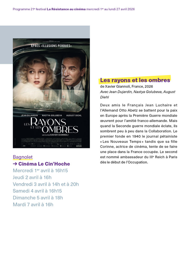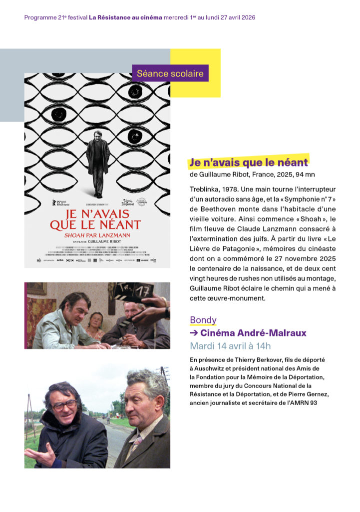 Ami.e, entends-tu ? Prochain festival la Résistance au cinéma à l’automne pour les scolaires… en dépit de la disparition du Pass culture pourtant si pratique pour transmettre la mémoire… celle de la Résistance au nazisme et au régime de Vichy, mémoire des camps nazis aussi