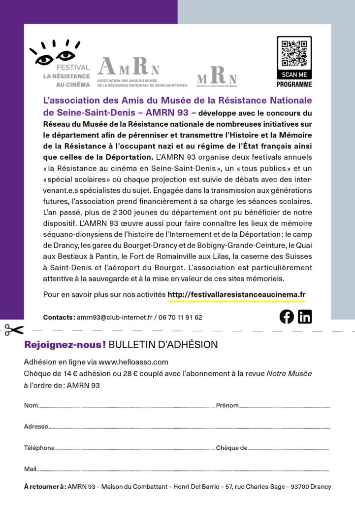 Et les élèves dans tout ça ? « Il y a autant de questions qu’il y a de scolaires dans les fauteuils », notent l’AMRN 93 et les intervenant.e.s invité.e.s. Si « Résistance », « Déportation », « camps de concentration », « camps d’extermination », etc. sont abstraits à l’entrée du cinéma, les échanges post-projection éclairent le propos, grâce aux partenaires que sont les Amis de la Fondation pour la Mémoire de la Déportation – AFMD -, les associations du Réseau-Musée de la Résistance nationale : le Mémorial national des femmes en résistance et en déportation – MNFRD -, l’association Mémoire des Résistants Juifs de la M.O.I. – MRJ-MOI – et l’Amicale Châteaubriant-Voves-Rouillé-Aincourt, mais aussi le Mémorial de la Shoah de Drancy, l’association Fonds Mémoire d’Auschwitz – AFMA -, le Musée de l’Histoire vivante, l’ARAC et l’ANACR. Le site internet Mémoires en réseau du département, Seine-Saint-Denis Tourisme ainsi que l’action essentiel des services jeunes publics des cinémas permettent la diffusion et le succès du festival. Financièrement, l’AMRN 93 prend en charge la billetterie de tous les élèves de l’élémentaire mais aussi parfois du secondaire avec le soutien du Département de la Seine-Saint-Denis, de la Délégation interministérielle à la lutte contre le racisme, l’antisémitisme et la haine anti-LGBT – Dilcrah – et de la Mission Libération du 80e anniversaire. À l’automne prochain, le 5e festival sera lui aussi « d’utilité publique » dans l’intérêt général.